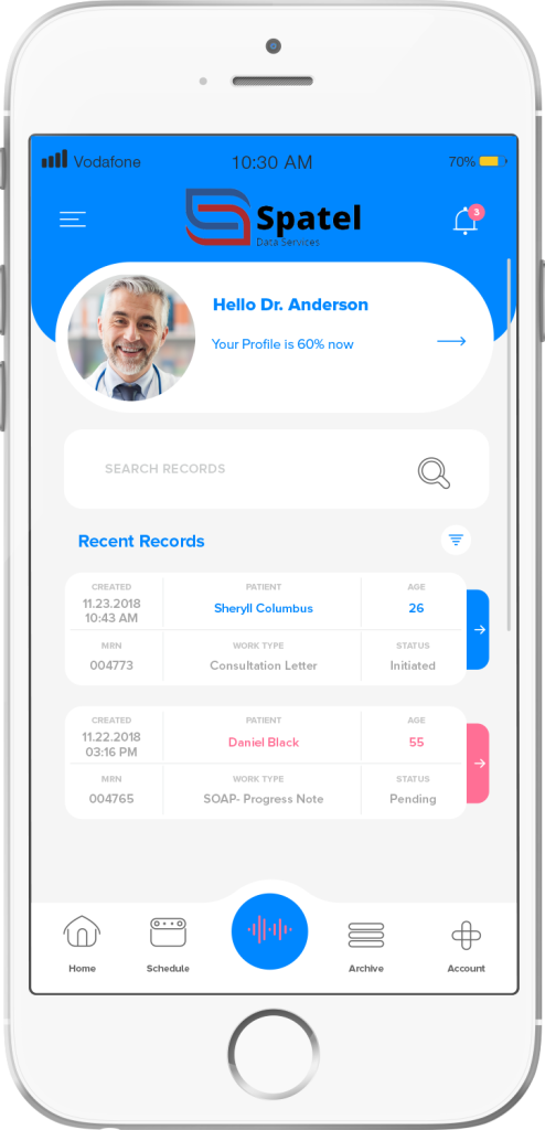 Spatel Data Service is an exceptional, adaptable, and user-friendly Dictation System, that has been developed domestically to ensure the swift transfer and prompt access of dictations across a broad authorized network. This can be done from any location and at any time through a secure web-enabled device, making the process seamless and hassle-free.
